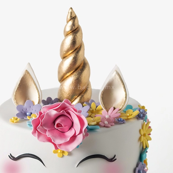 Magico pastel blanco decorado con los toques increíbles caracteristicos de un unicornio, celebra el cumpleaños de tu pequeña con este pastel de fondant.