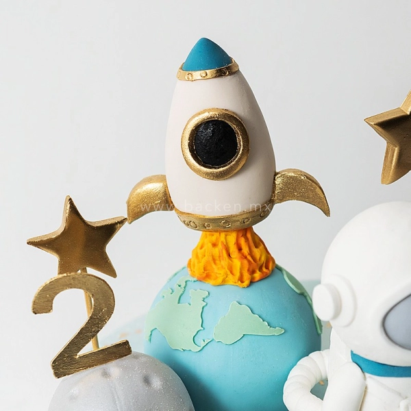 Precioso pastel color azul decorado con temática de astronauta, celebra a los pequeños soñadores de la casa con este increíble pastel, festeja una fiesta temática, cumpleaños o día especial.