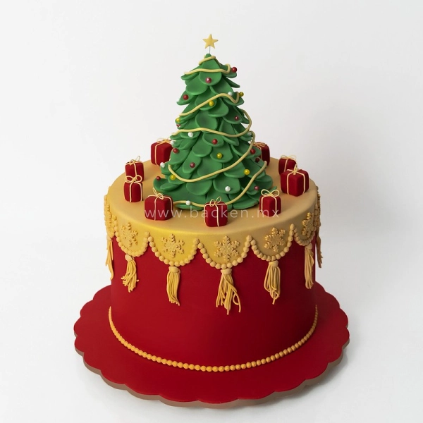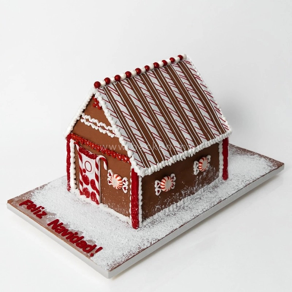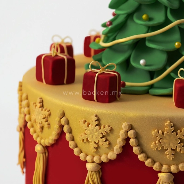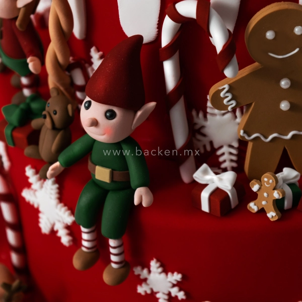 Impresionante pastel navideño de dos pisos con un nivel de detalle impresionante.