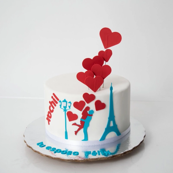 Hermoso pastel de bodas en forma de corazón, ideal para quellas parejas que se casan y quieren un pastel sencillo pero significativo.