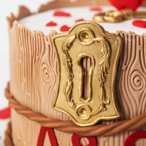 Celebra este 14 de Febrero con este bonito pastel en forma de cofre y en la parte alta una carta y corazones de fondant.