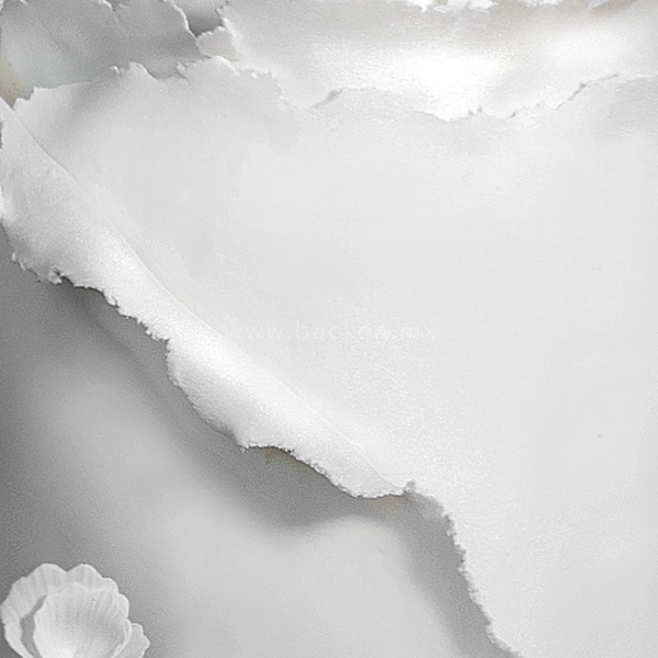Celebra tu boda con este increíble pastel de bodas blanco de tres pisos decorado con un hermoso estilo minimalista en color blanco y delicadas flores hechas con fondant de la más alta calidad.