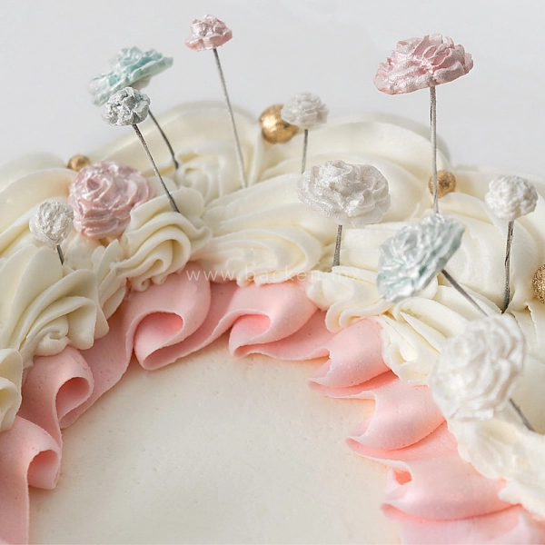 La delicadeza de la decoración de este pastel con florecillas de fondant y el toque dorado serán motivo de muchas fotos para tu cumpleaños o para sorprender a tu festejada. Se puede hacer en dos pisos a partir de 30 personas, y si lo quieres más pequeños, adaptaremos el diseño a un piso.